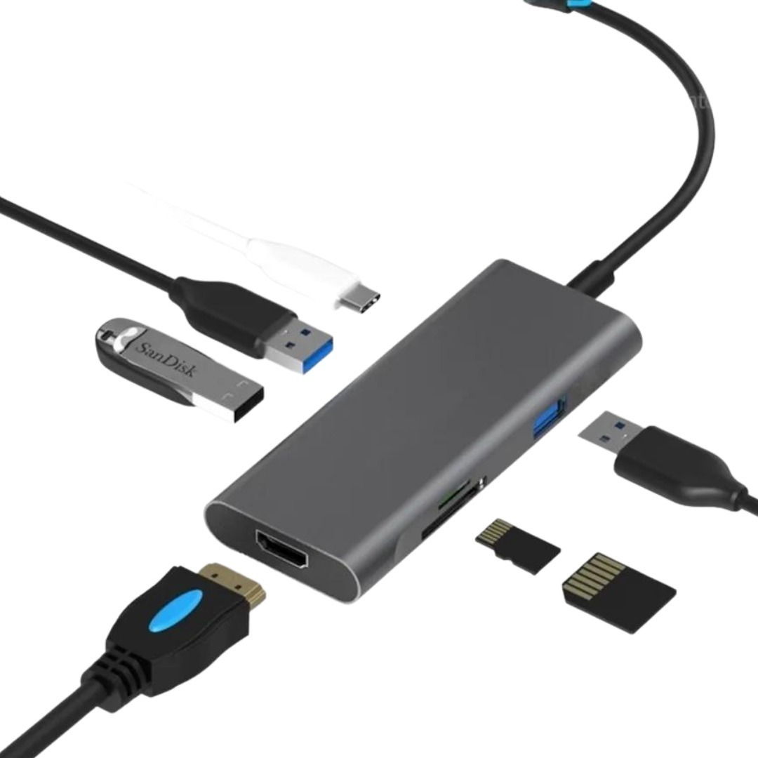 HUB ADAPTADOR USB-C 7 EM 1 COM SAÍDA HDMI 4K/60Hz, PORTAS USB 3.0, SD, MICRO SD e USB-C PD